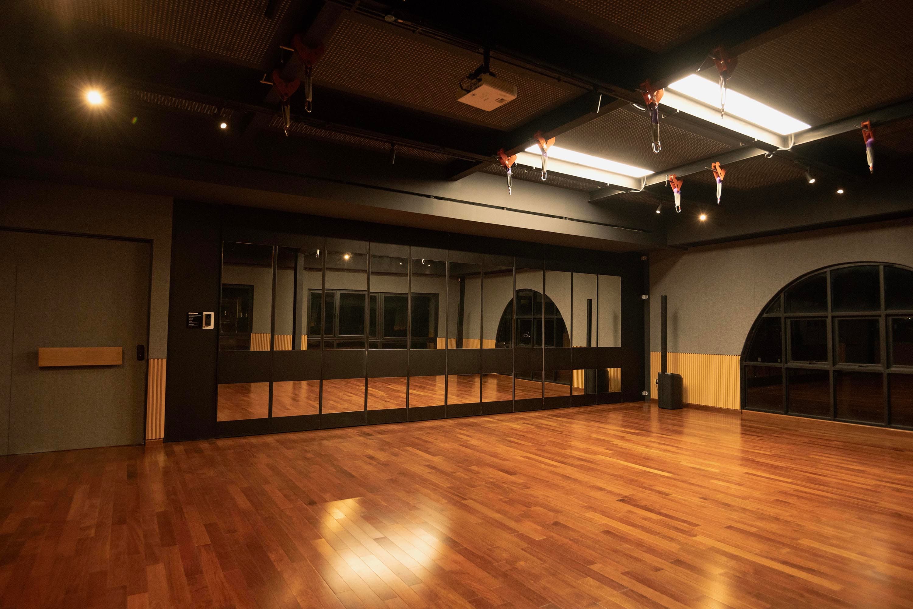 The studio, able to fit 30 people, that’s perfect for yoga and meditation, a view of the pool, natural sunshine from east to west, a mirror wall, and carefully calibrated acoustics.