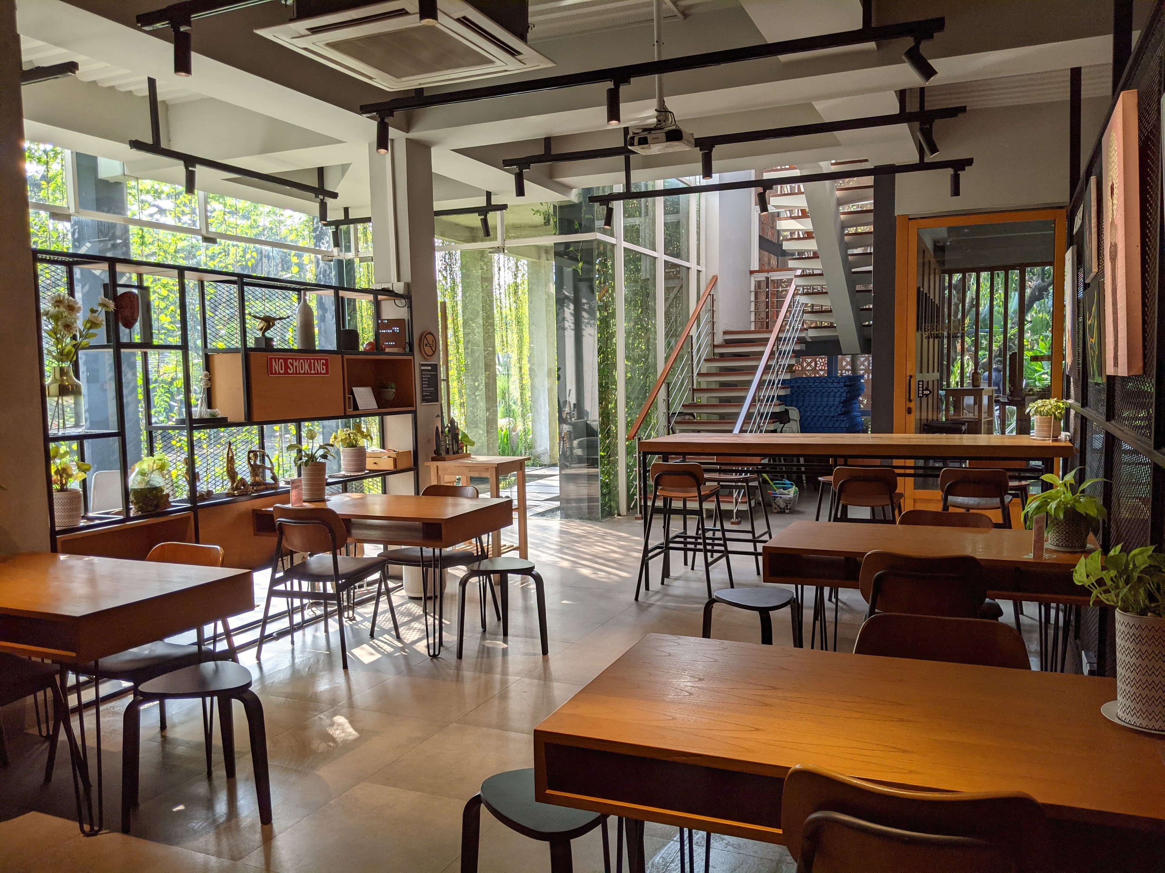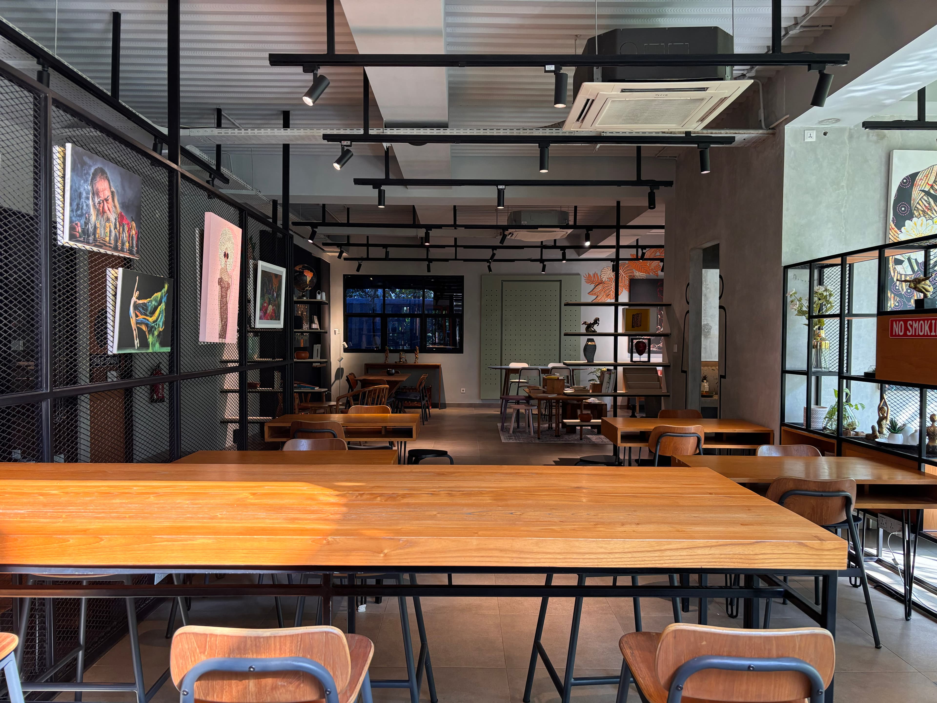 The workspace can accommodate 50 people comfortably. Perfect for simple meetups, gatherings, or a dinner party.