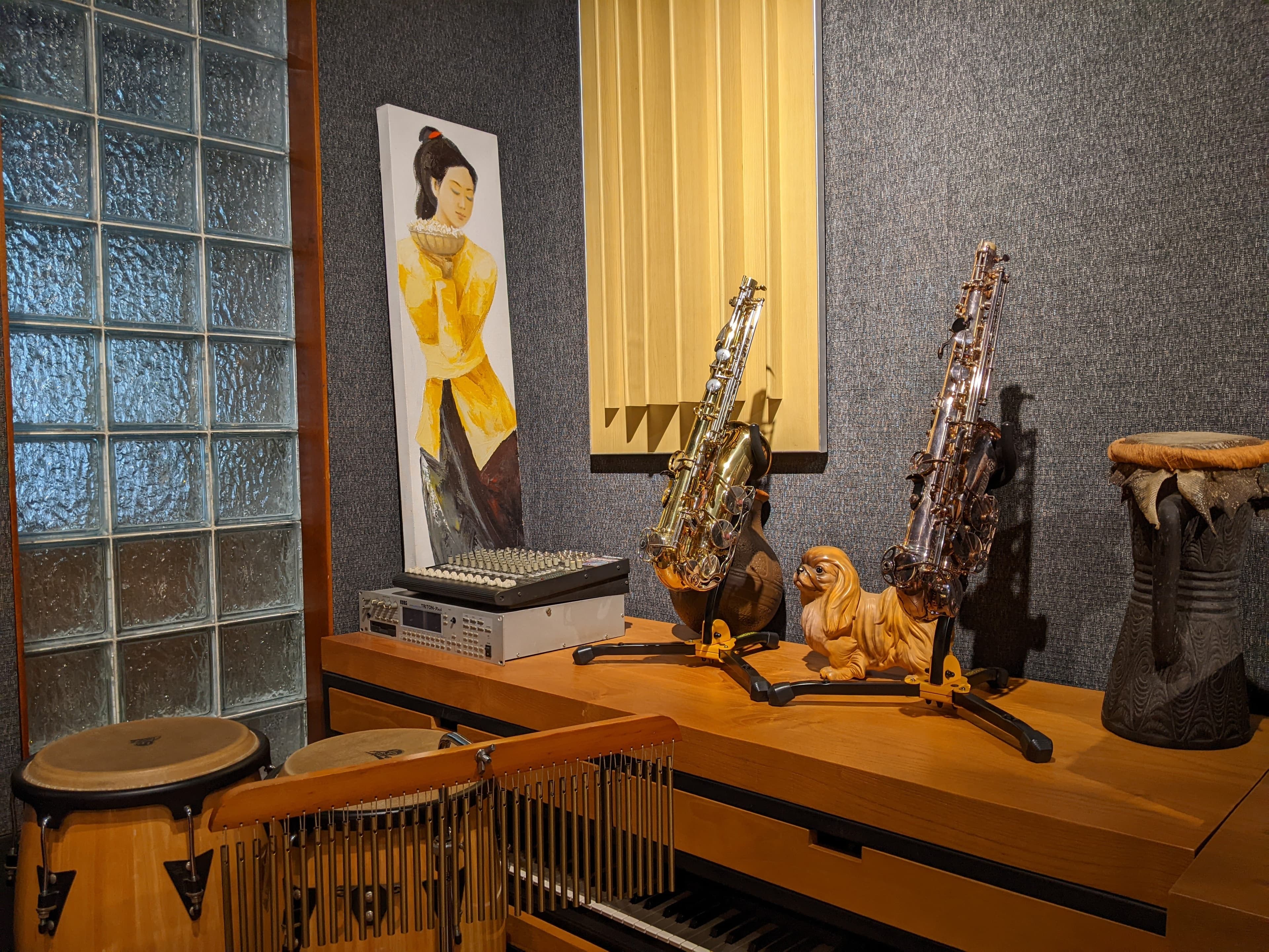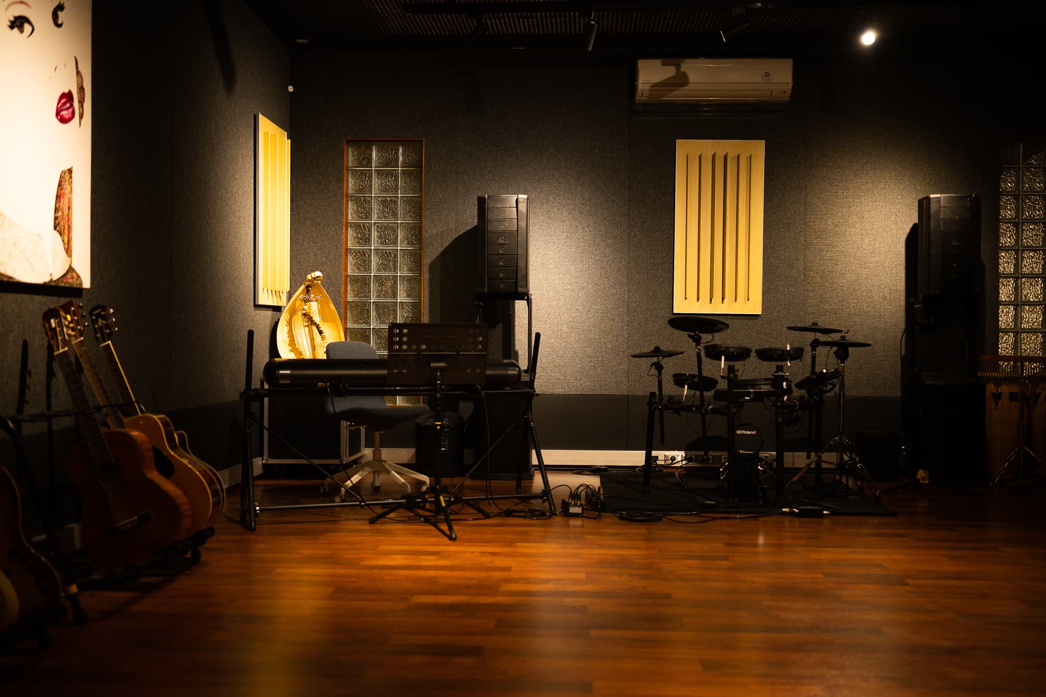 Designed from scratch to empower creators to channel their creative energies into their music and audio projects without being weighed down by technical complexities, making it an ideal space for a wide range of audio production endeavors. Can easily fit 10 band members.